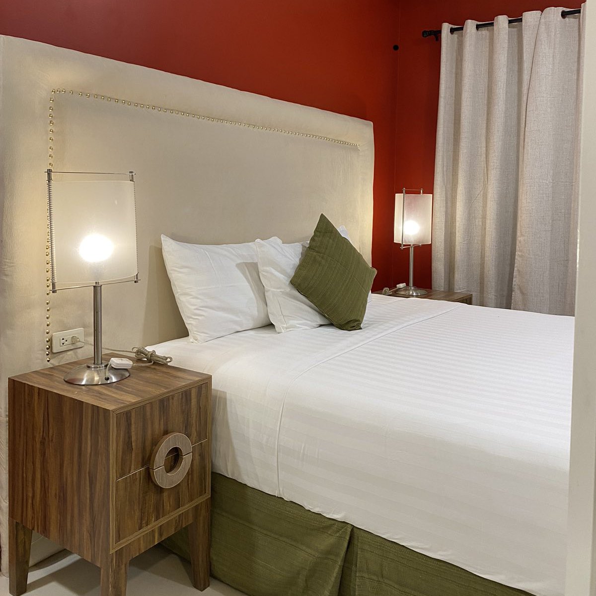 Good for two (2) persons. Inclusive of 2 (two) bottled water with 2 (two) coffee and toiletries with fresh towels every day. Fully air conditioned room with flat screen cabled TV, hot and cold shower and accessible Wi-Fi connection even in public areas. Additional fee of 250.00 for additional extra person. Additional fee of 500.00 for extra mattress.