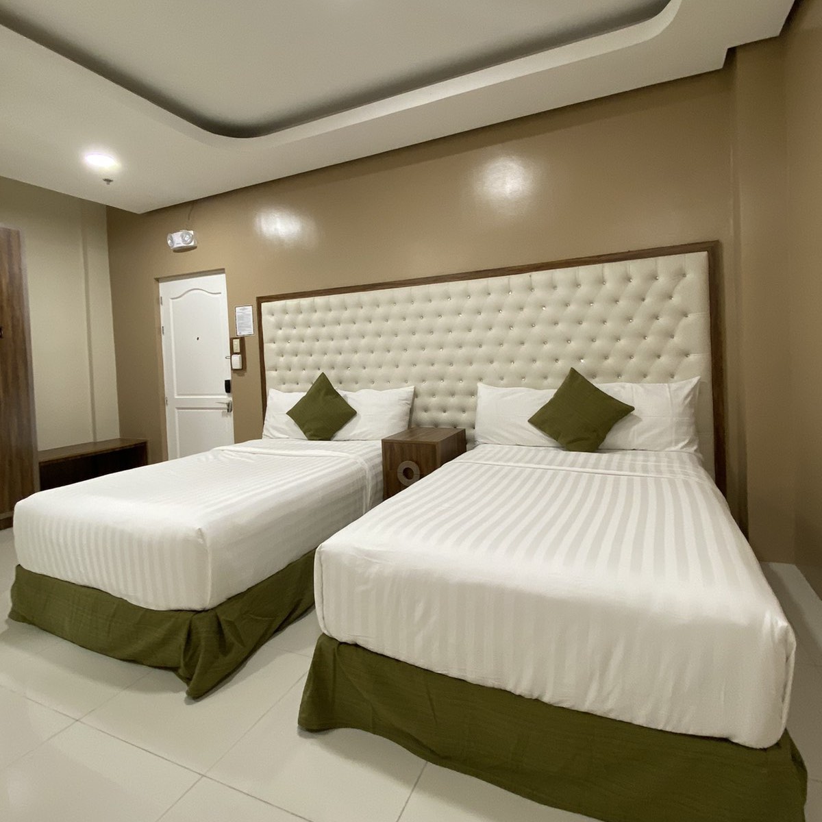 Good for three (3) persons. Inclusive of 3 (three) bottled water with 3 (three) coffee and toiletries with fresh towels every day. Fully air conditioned room with flat screen cabled TV, hot and cold shower and accessible wi-fi connection even in public areas. Additional fee of 250.00 for additional extra person. Additional fee of 500.00 for extra mattress.